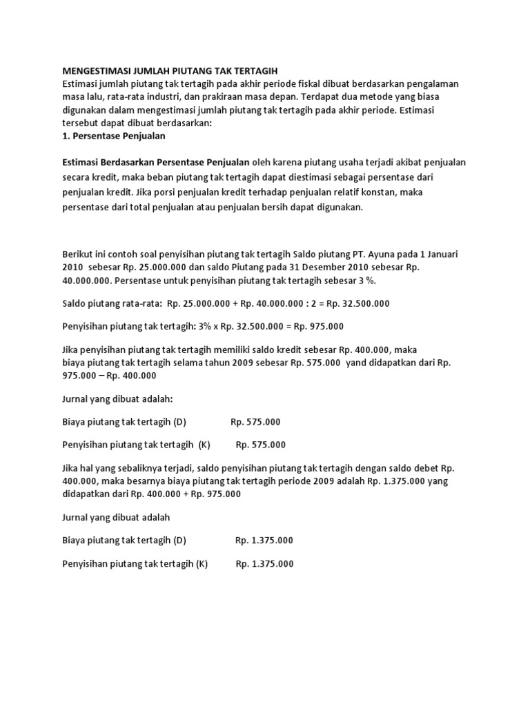Cadangan Kerugian Piutang Perhitungan Dan Pencatatan from manajemenkeuangan.net Maybe you would like to learn more about one of these? Check spelling or type a new query. We did not find results for: